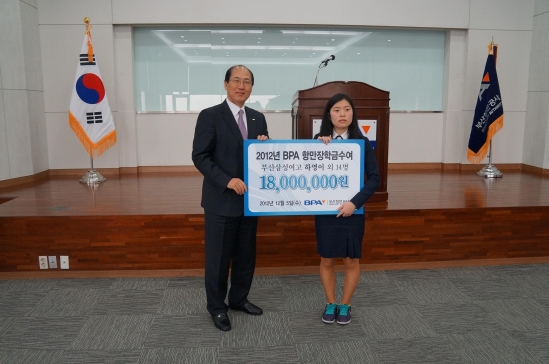 부산항만공사 임기택 사장은 지난 5일 부산삼성여고 하영이 외 14명의 부산항운노동조합 자녀들에게 1천8백만원의 장학금을 전달했다. 부산항만공사는 지난해부터 인재 양성과 공정사회 실천을 위한 나눔 행사의 일환으로 부산항운노동조합원 자녀들에게 항만장학금을 지급해오고 있다.