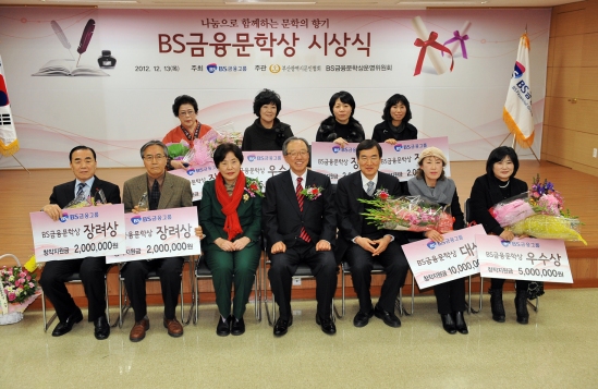 BS금융그룹(회장 이장호)은 BS금융그룹이 주최하고 부산광역시문인협회(회장 정영자)가 주관한 'BS금융문학상‘의 시상식을 13일(목) 오후 부산은행 본점 7층 강당에서 가졌다고 밝혔다.