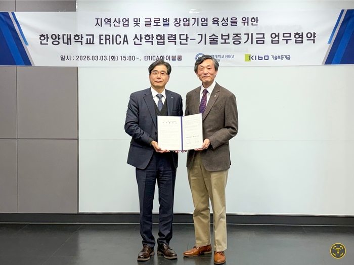 기술보증기금(이사장 김종호)은 3일 경기 안산시 ERICA 학연산클러스터지원센터에서 한양대학교 ERICA(총장 이기정)와 「지역산업 및 글로벌 창업기업 육성을 위한 업무협약」을 체결했다고 밝혔다.기술보증기금과 한양대학교 ERICA가 지역 기술창업기업의 글로벌 경쟁력 강화를 위해 손을 맞잡았다. 정책금융과 대학의 연구·산학 네트워크를 결합해 기술이전과 사업화를 촉진하고, 해외시장 진출까지 연계하는 전주기 지원체계를 구축한다는 구상이다.