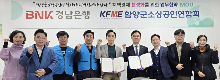 BNK경남은행은 27일 함양지점과 함양군 소상공인연합회가 ‘소상공인 상생금융 업무협약’을 체결했다고 밝혔다.