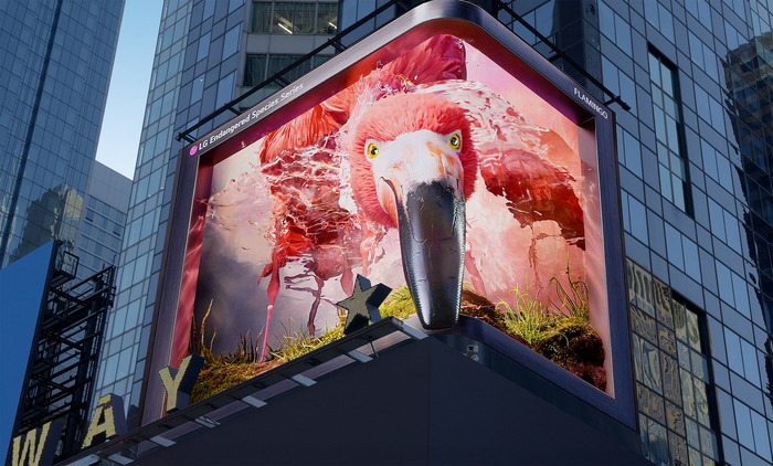 LG전자는 최근 미국 뉴욕 타임스스퀘어 전광판을 통해 ‘LG와 함께하는 멸종위기종 보호 캠페인(The LG Endangered Species Series)’의 9번째 영상인 ‘플라밍고’ 편을 공개했다고 밝혔다.