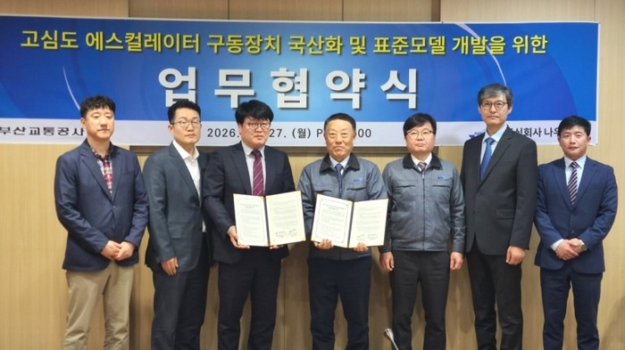 부산교통공사(사장 이병진)는 국내 정밀기기 제조업체 ㈜나우테크(대표이사 정우석)와 고심도 에스컬레이터 구동장치 국산화 및 표준모델 개발을 위한 업무협약(MOU)을 체결했다고 27일 밝혔다.부산도시철도의 깊은 지하를 오르내리는 고심도 에스컬레이터 핵심 구동장치가 국산 기술로 대체될 전망이다. 부산교통공사가 민간 기업과 손잡고 고난도 핵심부품 개발에 나서면서 비용 절감과 부품 수급 안정성, 유지관리 효율 개선이라는 세 마리 토끼를 동시에 잡을 수 있을지 주목된다.